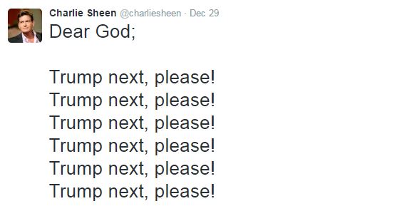 Την αρχή έκανε ο Τσάρλι Σιν, που με μία ανάρτησή του στο Twitter όπου ζήτησε από τον Θεό ο επόμενος που θα πεθάνει να είναι ο Ντόναλντ Τραμπ.