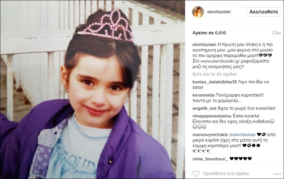Ο λόγος, για την Ελένη Τσολάκη, η οποία λόγω της Τσικνοπέμπτης, ανέβασε στον προσωπικό της λογαριασμό στο Instagram μία φωτογραφία, που απεικονίζει την ίδια σε μικρή ηλικία φορώντας μία αποκριάτικη στολή.