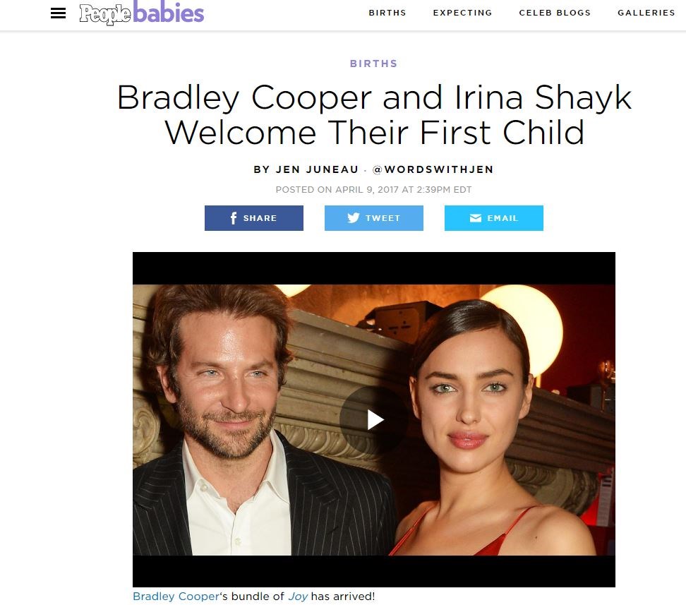 Σύμφωνα με ρεπορτάζ του αμερικανικού περιοδικού, People, το οποίο επικαλείται πληροφορίες από το περιβάλλον του ζευγαριού, η Ιρίνα Σάικ γέννησε πριν από δύο εβδομάδες το πρώτο της παιδί.Όπως αναφέρει το περιοδικό, ο μπαμπάς, Μπράντλεϊ Κούπερ δεν έφυγε στιγμή από κοντά της. O 42χρονος ηθοποιός και η 31χρονη καλλονή από τη Ρωσία έγιναν ζευγάρι τον Μάιο του 2015, ενώ η Ιρίνα περπάτησε έγκυος στο φετινό σόου της Victoria’s Secret τον Νοέμβριο. Δείτε το ρεπορτάζ: