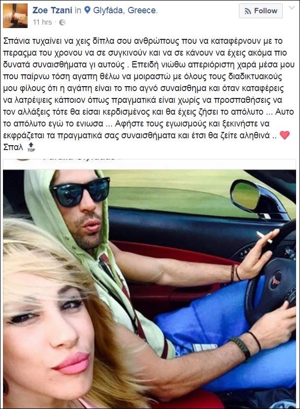 Το μήνυμα της συντρόφου του Σπαλιάρα στο facebook