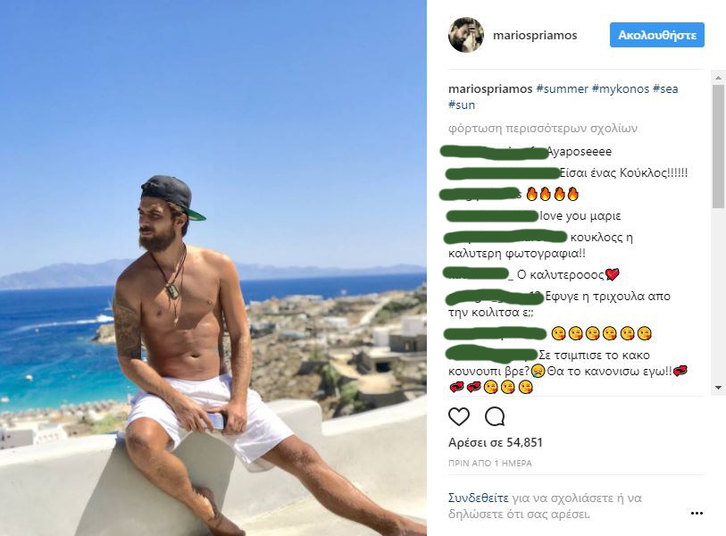 Στη Μύκονο για διακοπές βρίσκεται ο φιναλίστ του Survivor, Μάριος Πρίαμος Ιωαννίδης, ο οποίος ανεβάζει τον προσωπικό του λογαριασμό στο Instagram φωτογραφίες, θέλοντας να ενημερώσει τους διαδικτυακούς του φίλους πώς περνάει.