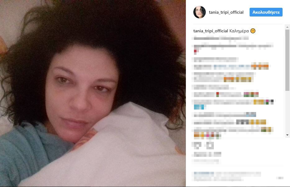 “Καλημέρα” από το κρεβάτι της, είπε στους διαδικτυακούς της φίλους, η Τάνια Τρύπη.