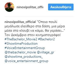Αφορμή στάθηκε ο ρόλος του στην ταινία The Batchelor 2, όπως έγραψε κι ο ίδιος. Ο Νίνο ανέβασε φωτογραφία και βίντεο στο Instagram, με τους θαυμαστές του, να του εύχονται καλή επιτυχία στο νέο επαγγελματικό του εγχείρημα.