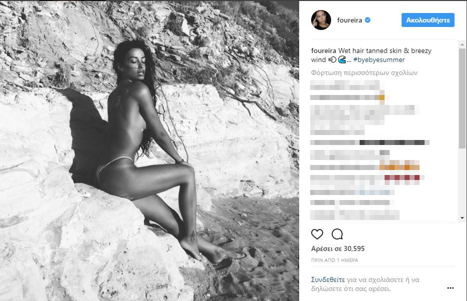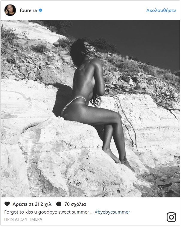 “Φωτιά” στο Instagram έβαλε η Ελένη Φουρέιρα, η οποία δημοσίευσε χθες στον προσωπικό της λογαριασμό δύο φωτογραφίες στις οποίες ποζάρει τόπλες, σε βράχια δίπλα στη θάλασσα.