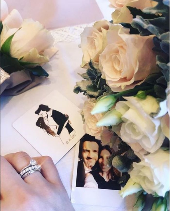 Η ηθοποιός ανέβασε φωτογραφίες στο Instagram, όπου φαίνεται η βέρα, το μονόπετρό της και η ανθοδέσμη της