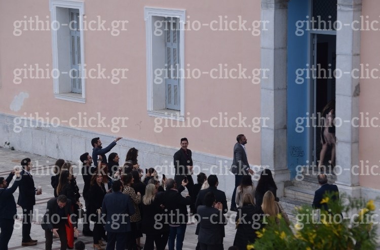 Συγγενείς και φίλοι του ζευγαριού βρέθηκαν στο Γύθειο ώστε να είναι δίπλα τους την πιο ευτυχισμένη στιγμή της ζωής τους.
