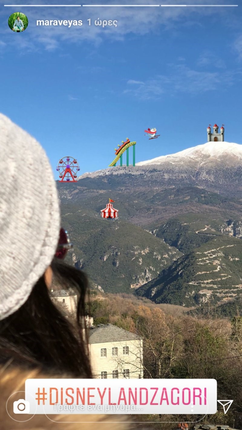 Το ζευγάρι μετά τα Χριστούγεννα πραγματοποίησε μια εκδρομή εκτός Αθηνών και ο Κωστής Μαραβέγιας φωτογράφισε την αγαπημένη του στην πρώτη τους απόδραση στα Ζαγοροχώρια. Συγκεκριμένα, ο δημοφιλής τραγουδιστής φωτογράφισε την ηθοποιό να απολαμβάνει τη θέα.