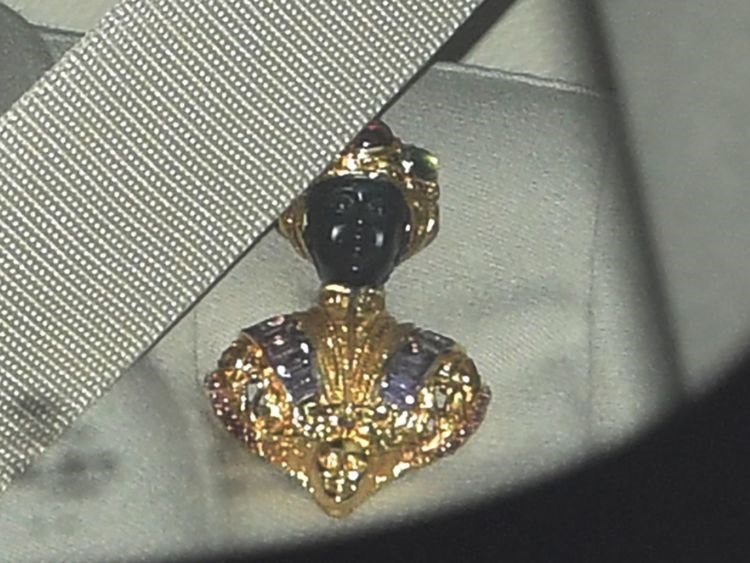 Η καρφίτσα είναι της σειράς «Blackamoor», αντίκα του 18ου αιώνα. Τα κοσμήματα αυτής της σειράς είναι γνωστά για τις απεικονίσεις μαύρων ανθρώπων σε θέσεις υποτέλειας.