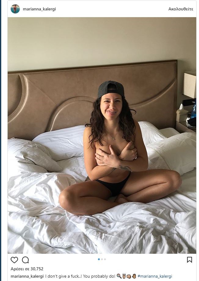 Συγκεκριμένα, φωτογραφήθηκε ημίγυμνη στο κρεβάτι της. Σε αυτή κρατάει το γυμνό στήθος της και φοράει μονάχα το κάτω εσώρουχό της, ανάβοντας “φωτιές” σε όσους την ακολουθούν και όχι μόνο.