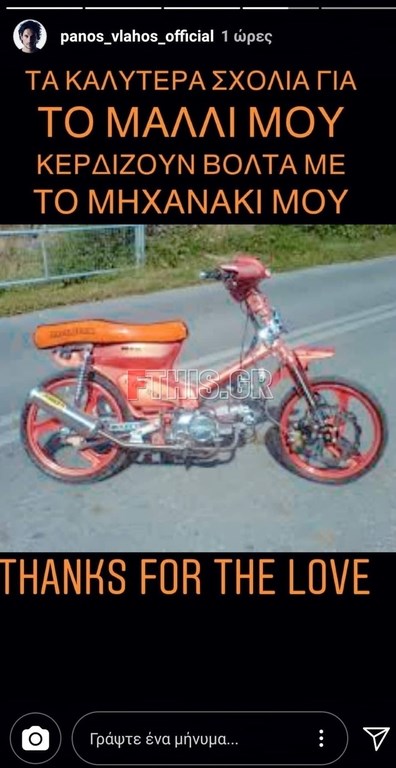 Μάλιστα, θέλησε να απαντήσει στα σχόλια που δέχτηκε με χιούμορ, ανεβάζοντας μια εικόνα στα instastories με ένα παλιό μηχανάκι και γράφοντας: «Τα καλύτερα σχόλια για το μαλλί μου κερδίζουν βόλτα με το μηχανάκι μου. Ευχαριστώ για την αγάπη».