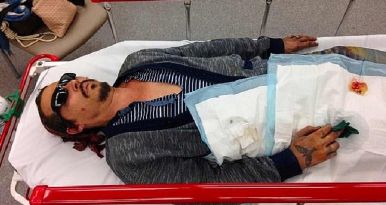 Η φωτογραφία δείχνει τον ηθοποιό στο κρεβάτι του νοσοκομείου μετά τον καβγά.