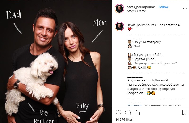 Μέσω Instagram επιβεβαίωσε την εγκυμοσύνη της συζύγου του, ο Σάββας Πούμπουρας. Το ζευγάρι περιμένει το πρώτο του παιδί.