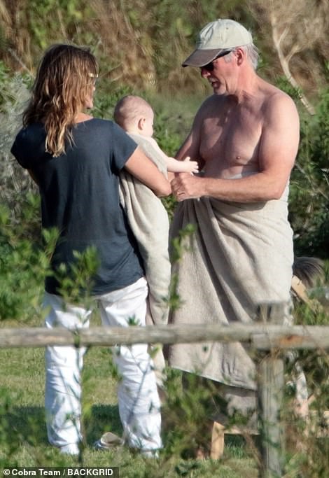 Οι τρεις τους κάνουν διακοπές σε αγρόκτημα στην Τοσκάνη και απολαμβάνουν χαλαρές οικογενειακές στιγμές στην ιταλική εξοχή. Ο Γκιρ έχει έναν γιο 19 χρονών από την πρώτη του σύζυγο όπως και η Αλεχάντρα έναν 6χρονο γιο από τον πρώτο της γάμο. Πάντως, ο Χολιγουντιανός σταρ δείχνει πολύ τρυφερός και δοτικός πατέρας.