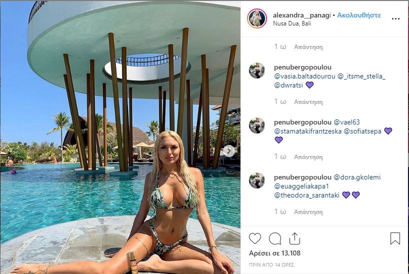 Ποζάρει χαμογελαστή και πιο σέξι από ποτέ και “κολάζει” η Αλεξάνδρα Παναγιώταρου. Η πρώην παίκτρια του “My Style Rocks” συνεχίζει τις διακοπές της στο εξωτικό Μπαλί αλλά δεν ξεχνά να μοιράζεται με τους followers της στιγμές της.