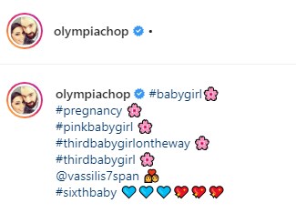 Η Ολυμπία Χοψονίδου θέλησε το βράδυ της Τρίτης να ανακοινώσει και στους διαδικτυακούς της φίλους το φύλο του 6ου της παιδιού, με τις ευχές να πέφτουν βροχή.