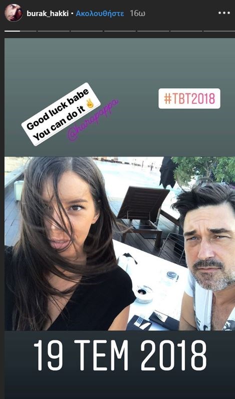 Ο γνωστός ηθοποιός ανέβασε στον προσωπικό του λογαριασμό στο Instagram μία φωτογραφία στην οποία ποζάρει μαζί με τη Χαρά και έγραψε: “Καλή επιτυχία μωρό μου. Μπορείς να το κάνεις”. Με αυτόν τον τρόπο ο Μπουράκ Χακί θέλησε να στηρίξει την προσπάθεια που κάνει η σύντροφός του στο ριάλιτι μοντέλων.