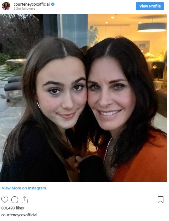 Η 55χρονη Κοξ ανέβασε στον λογαριασμό της στο Instagram την ημέρα των Ευχαριστιών στις ΗΠΑ, μια φωτογραφία αγκαλιά με την 15χρονη κόρη της, Coco, γράφοντας “είμαι τόσο ευγνώμων”. Η κολλητή φίλη και συμπρωταγωνίστριά της στη σειρά “Τα Φιλαράκια”, Τζένιφερ Άνιστον δεν έχασε την ευκαιρία να σχολιάσει τη φωτογραφία, μιας και είναι και η νονά της 15χρονης.