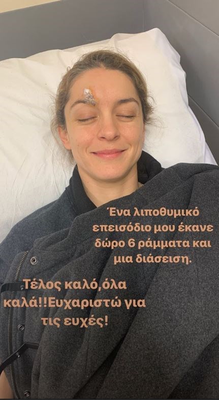Λίγες ώρες αργότερα, με instastory εξήγησε στους followers της τι ακριβώς είχε συμβεί. Όπως έγραψε,«ένα λιποθυμικό επεισόδιο μου έκανε δώρο έξι ράμματα και μία διάσειση. Τέλος καλό, όλα καλά! Ευχαριστώ για τις ευχές!»