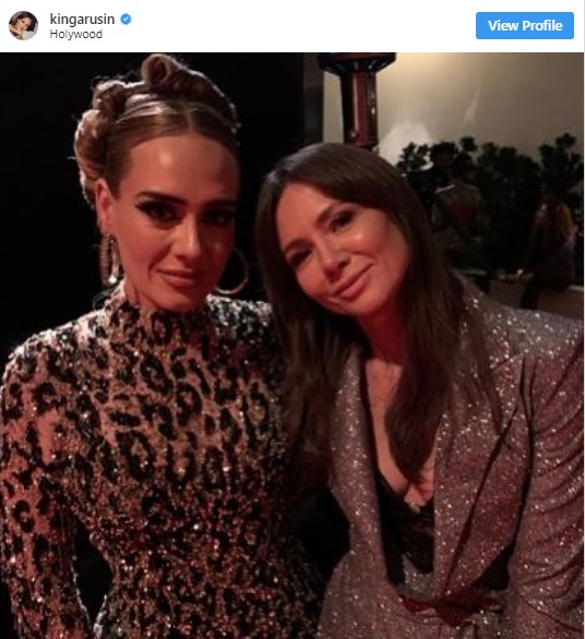 Η παρουσιάστρια από την Πολωνία, Kinga Rusin, δημοσίευσε στον λογαριασμό της στο Instagram μια φωτογραφία μαζί με την Αντέλ, δίνοντας μια ευκαιρία στους θαυμαστές της να δουν το λαμπερό φόρεμα της.