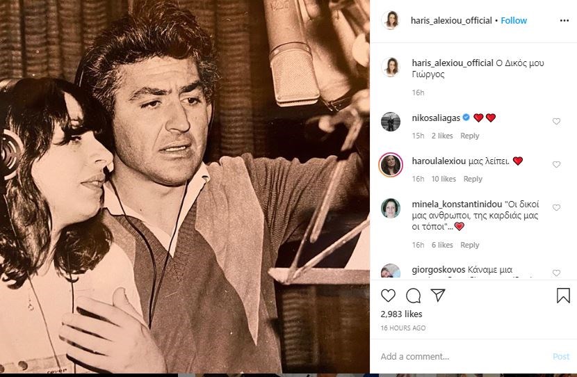Η γνωστή ερμηνεύτρια ανήρτησε μία φωτογραφία από το παρελθόν, στην οποία απεικονίζονται τα δύο αδέλφια να τραγουδούν. «Ο Δικός μου Γιώργος», έγραψε χαρακτηριστικά η Χάρις Αλεξίου στη λεζάντα της φωτογραφίας, η οποία δεν είχε κρύψει ποτέ την μεγάλη αδυναμία που του είχε.