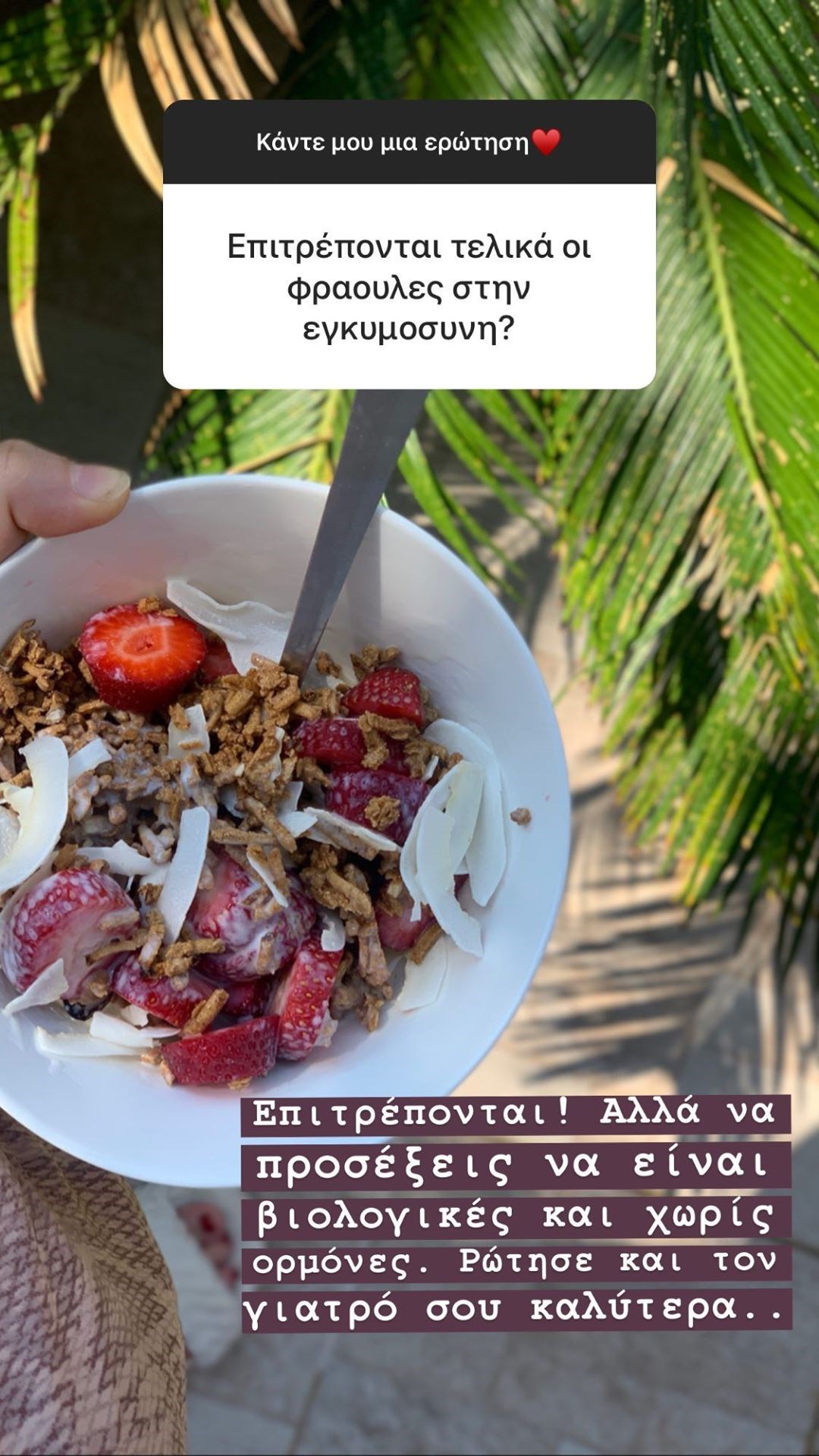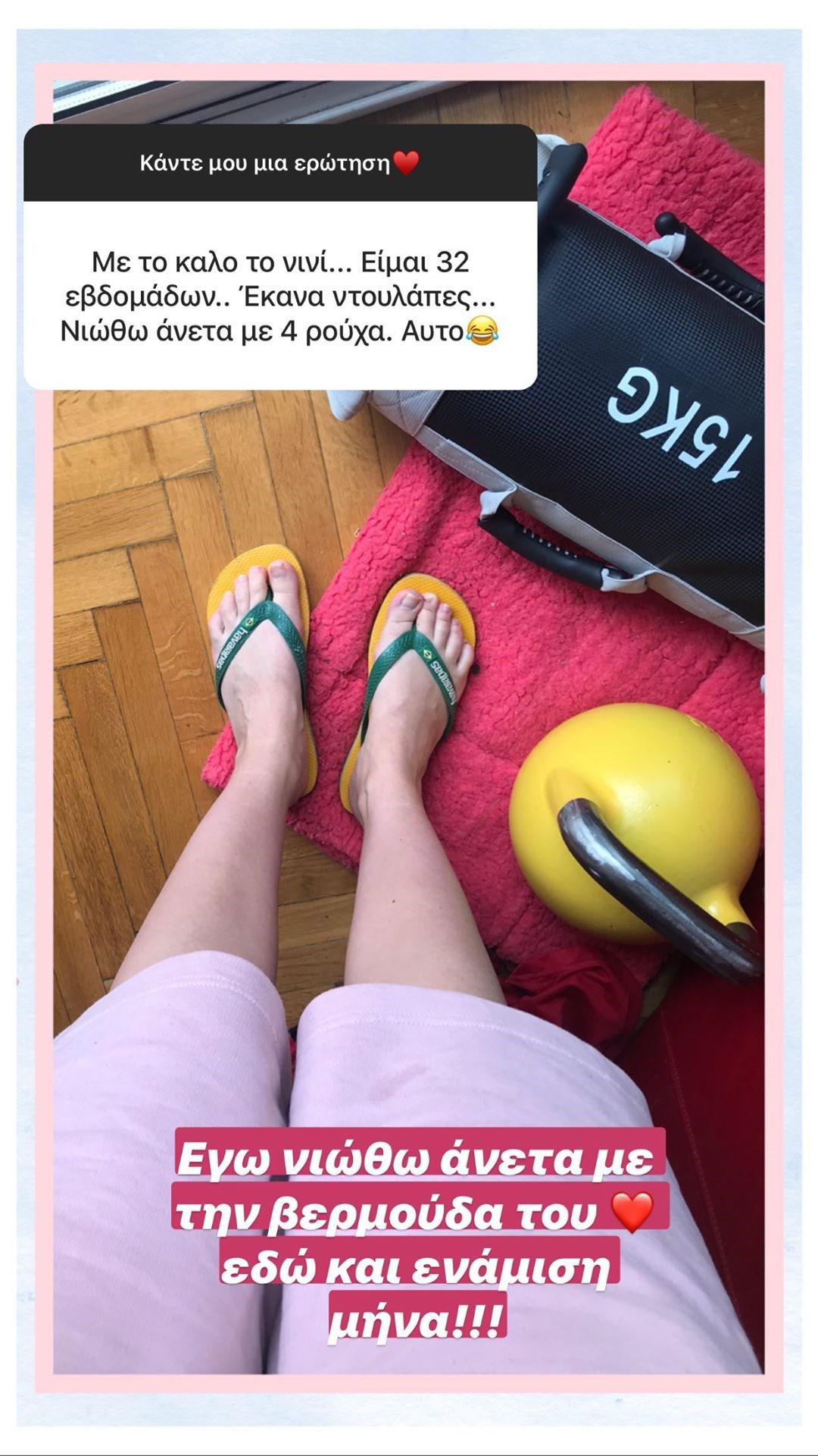 Το μοντέλο και παρουσιάστρια Νικολέττα Ράλλη, που είναι έγκυος και περιμένει να φέρει σύντομα στον κόσμο το πρώτο παιδί της, παραμένει ιδιαίτερα δραστήρια στα social media. Χθες, απάντησε σε ερωτήσεις που της έκαναν στο instagram θαυμαστές της, για την διατροφή της, πώς περνάει τον χρόνο της εν μέσω καραντίνας, αν έχει ετοιμάσει το δωμάτιο του μωρού και αν γυμνάζεται. Ένας από τους followers της, ζήτησε να δημοσιεύσει μια φωτογραφία με την κοιλίτσα της και η Νικολέττα Ράλλη δεν μπόρεσε να αρνηθεί.