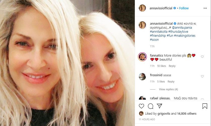 «Από κοντά κι αγαπημένες…», έγραψε η Άννα Βίσση στη λεζάντα της κοινής τους φωτογραφίας.