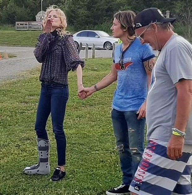 Ο Κιθ Έρμπαν αποκάλυψε με μια φωτογραφία στο instagram ότι η σύζυγός του, Νικόλ Κίντμαν, τραυματίστηκε κατά τη διάρκεια του lockdown λόγω του κορονοϊού. Το ζευγάρι μαζί με τα παιδιά τους πέρασαν την περίοδο αυτή σε απομόνωση στο σπίτι τους στο Νασβιλ, Οι θαυμαστές της μόλις είδαν τον νάρθηκα στο πόδι της έσπευσαν να ευχηθούν περαστικά. Η 52χρονη ηθοποιός έσπασε τον αστράγαλό της, ο τραγουδιστής καθησύχασε τους θαυμαστές της, δηλώνοντας στο ΕΤ ότι έσπασε τον αστράγαλο, αλλά το αντιμετωπίζει ως στρατιώτης.
