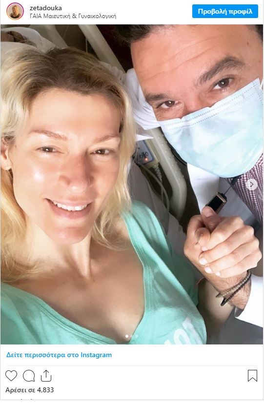 Η Ζέτα Δούκα ανέβασε φωτογραφίες μέσα από το δωμάτιο νοσοκομείο όπου τη βλέπουμε μαζί με τον σύζυγό της, Μιχάλη Χατζαντωνά, τη μητέρα της, αλλά και τον γυναικολόγο της, θέλοντας να τους ευχαριστήσει δημόσια για τη στήριξή τους.