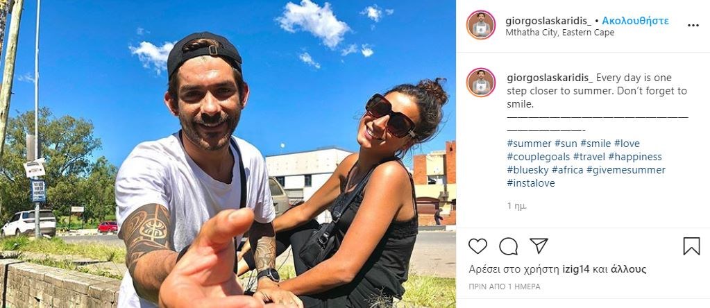 Ο Γιώργος ανέβασε στον προσωπικό του λογαριασμό στο Instagram μία φωτογραφία από ταξίδι που έκανε μαζί με την αγαπημένη του στη Νότια Αφρική. Ο παίκτης του ριάλιτι μαγειρικής συνόδευσε την ανάρτησή του με το σχόλιο: “Κάθε μέρα είναι ένα βήμα πιο κοντά στο καλοκαίρι. Μη σταματάτε ποτέ να χαμογελάτε”.