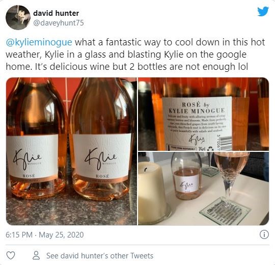 H διάσημη τραγουδίστρια Κάιλι Μινόγκ κυκλοφόρησε τη δική της μάρκα ροζέ κρασί με το όνομα «Kylie» και βρίσκονται σε επιλεγμένα σούπερ μάρκετ σε ολόκληρο το Ηνωμένο Βασίλειο, με το προϊόν να πωλείται έναντι 9 λιρών, δηλαδή, γύρω στα 10 ευρώ και να εξαντλείται μέσα σε λίγη ώρα σε κάποια από αυτά.