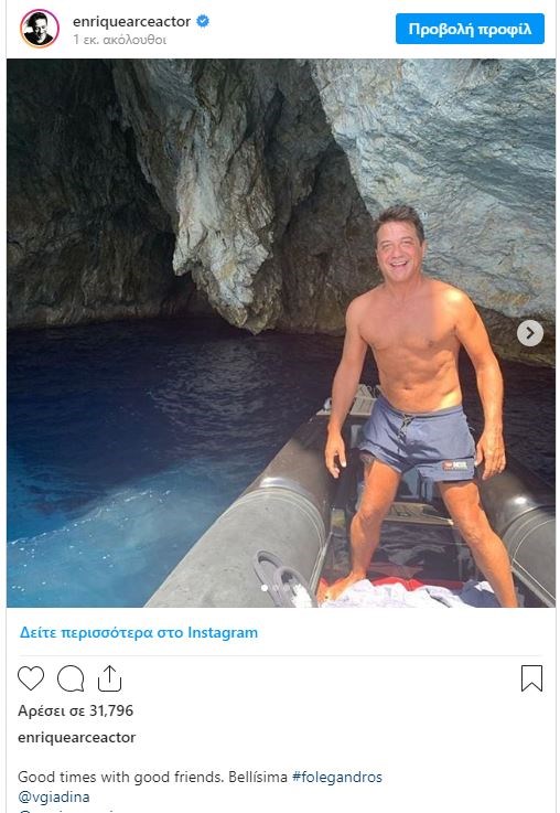Ο Ισπανός ηθοποιός απολαμβάνει τον ήλιο και τη θάλασσα της χώρας μας και συγκεκριμένα στη Φολέγανδρο χωρίς να παραλείπει να εκθειάσει τις ομορφιές της στους ένα εκατομμύριο followers του. Ο 47χρονος πρωταγωνιστής του La Casa De Papel πριν ταξιδέψει στο κυκλαδίτικο νησί έκανε και μια στάση στην Αθήνα όπου και επισκέφτηκε την Ακρόπολη.