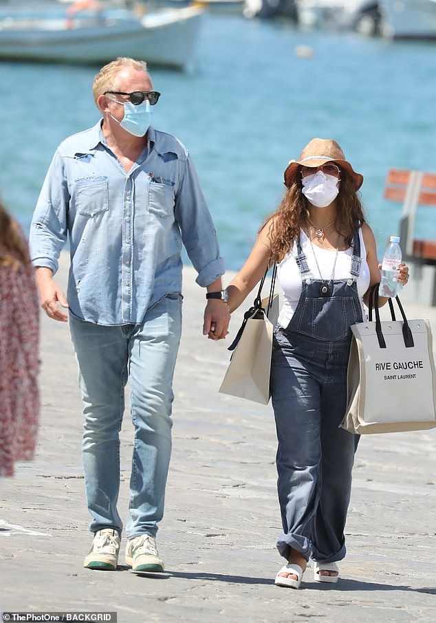 Βόλτες στα μυκονιάτικα σοκάκια απολαμβάνει η Σάλμα Χάγιεκ αφού μετά την Πάρο βρέθηκε στο Νησί των Ανέμων.