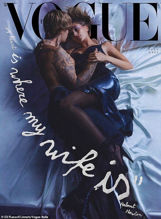 Με ένα αισθησιακό εξώφυλλο στη Vogue Italia γιορτάζουν τον έρωτά τους και τον γάμο τους ο Τζάστιν Μπίμπερ και η Χάιλι Μπίμπερ. Το ζευγάρι είναι ξαπλωμένο στο κρεβάτι και κοιτάζεται με πάθος ενώ μιλά για τη σχέση του και τη σεξουαλικότητά του. Οι αισθησιακές φωτογραφίες είναι αφιερωμένες στον θρυλικό φωτογράφο Χέλμουν Νιούτον και τη σύζυγό του Τζουν, ενώ στο ξώφυλλο είναι χαραγμένη η φράση του: “Η καρδιά μου είναι εκεί που βρίσκεται η σύζυγός μου”.