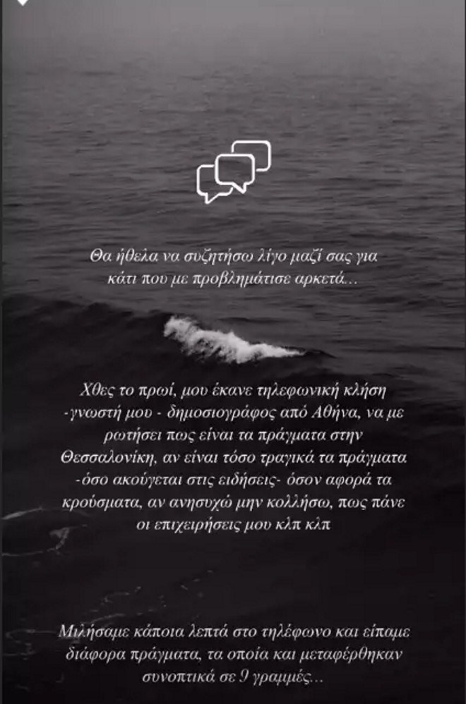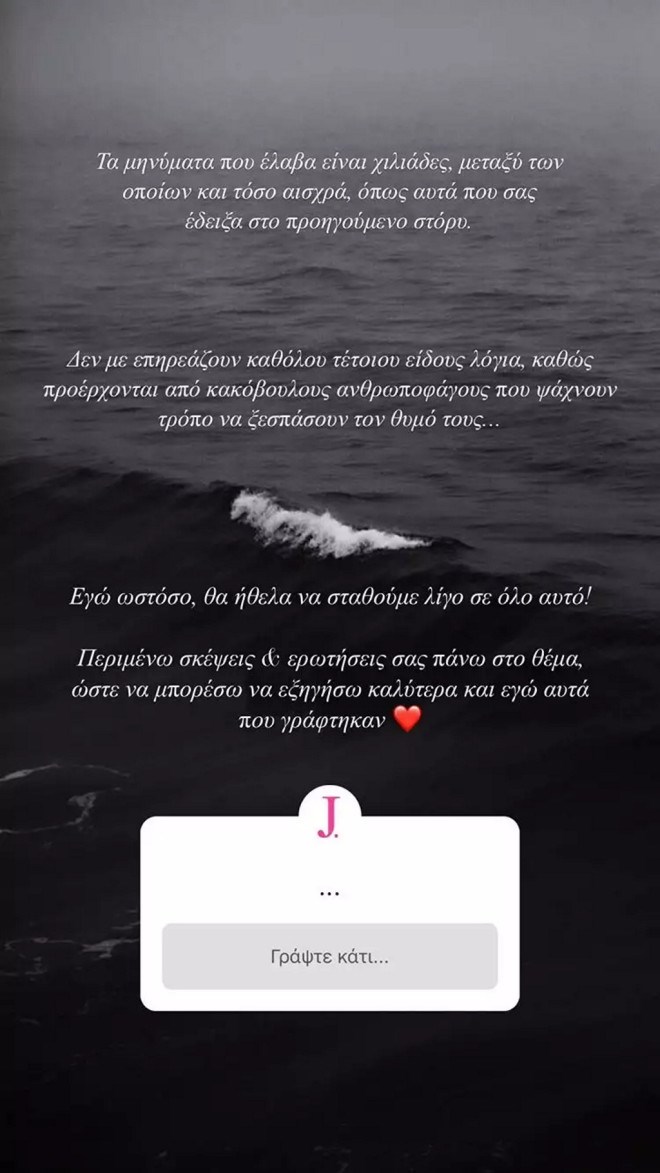 Συγκεκριμένα, η γνωστή influencer αναφέρθηκε στο επίδομα ειδικού σκοπού με το οποίο αποζημιώνονται οι εργαζόμενοι σε επιχειρήσεις που βρίσκονται με αναστολή λειτουργίας λέγοντας: «Τα 800 ευρώ είναι αστεία για τις επιχειρήσεις. Οι τεμπέληδες χαίρονται προφανώς τώρα που τα παίρνουν». Τα σχόλια που δέχτηκε ήταν πάρα πολλά, ορισμένα υβριστικά και χυδαία προς το πρόσωπό της και σήμερα η ίδια αποφάσισε να ξεκαθαρίσει πως η δήλωσή της δεν ήταν ακριβώς αυτή και ούτε εννοούσε αυτό που κατάλαβαν οι περισσότεροι.