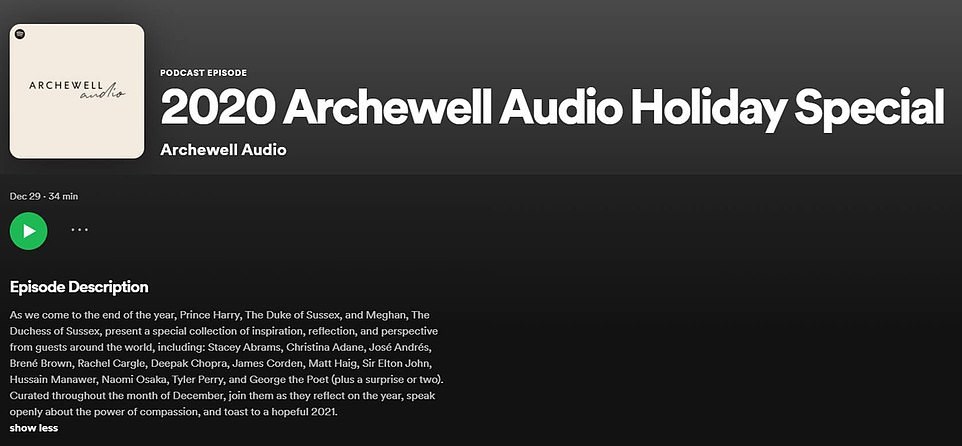 Ειδικό εορταστικό podcast έκαναν μέσω Spotify ο πρίγκιπας Χάρι και η Μέγκαν Μαρκλ, στην πρώτη παρουσία τους στη διάσημη πλατφόρμα αφού υπέγραψαν συμβόλαιο συνεργασίας αξίας 40 εκατ. δολαρίων. Το ζευγάρι κάλεσε στο πρώτο του podcast λαμπερούς και διάσημους φίλους του, όπως οι σερ Έλτον Τζον. Μπρενέ Μπράουν, Ντίπακ Τσόπρα, Τζέιμς Κόρντεν και Στέισι Άμπραμς, για να μιλήσουν για το πώς βίωσαν το 2020 αλλά και τι περιμένουν για το 2021. “Η αγάπη πάντα νικά” είπε ο Δούκας και η Δούκισσα του Σάσεξ.