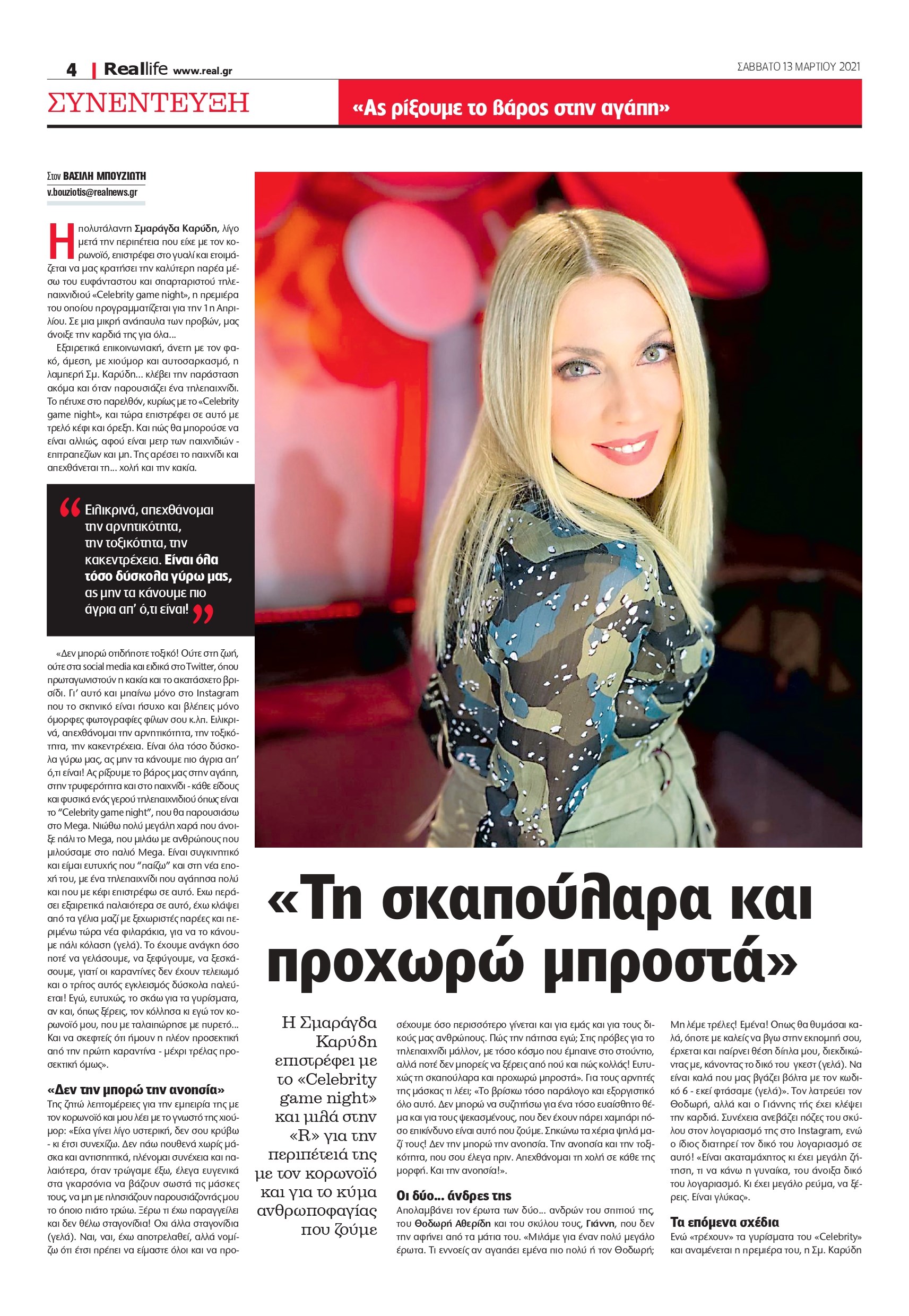 Η πολυτάλαντη Σμαράγδα Καρύδη, λίγο μετά την περιπέτεια που είχε με τον κορονοϊό, επιστρέφει στο γυαλί και ετοιμάζεται να μας κρατήσει την καλύτερη παρέα μέσω του ευφάνταστου και σπαρταριστού τηλεπαιχνιδιού «Celebrity game night», η πρεμιέρα του οποίου προγραμματίζεται για την 1η Απριλίου. Σε μια μικρή ανάπαυλα των προβών, μας άνοιξε την καρδιά της για όλα…