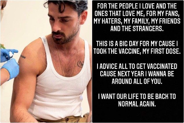 Ο 30χρονος ηθοποιός και τραγουδιστής ανέβασε δύο insta story στον λογαριασμό του όπου φωτογραφίζεται τη στιγμή που εμβολιάζεται κατά του κορονοϊού και στη συνέχεια ενημερώνει τους ακολούθους του για το γεγονός προτρέποντάς τους παράλληλα να μιμηθούν το παράδειγμά του: