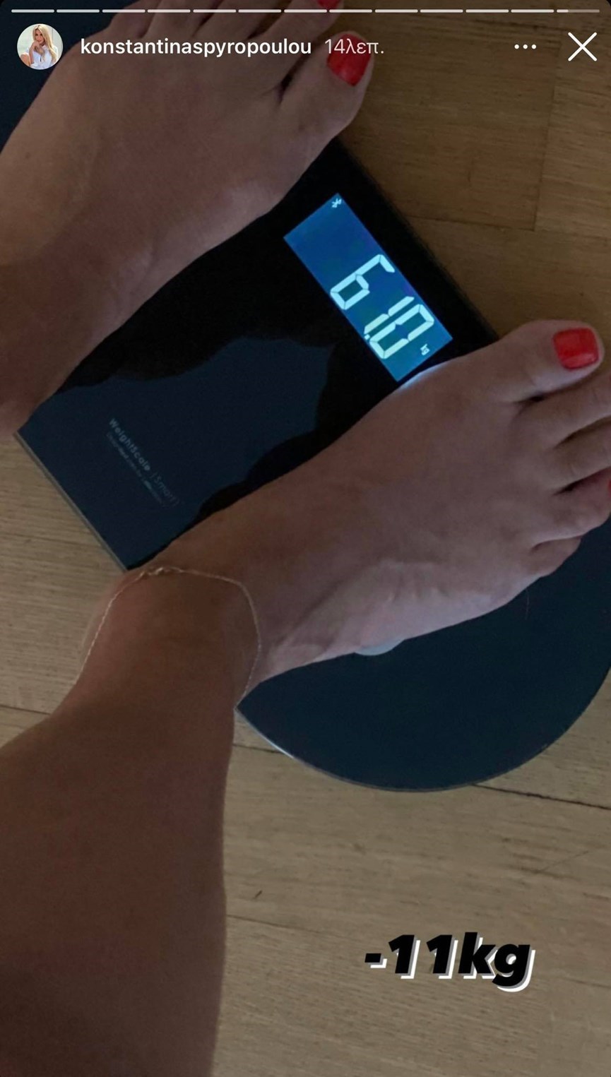 Όπως μπορεί να παρατηρήσει κανείς μέσα από τις αναρτήσεις της στο Instagram η γνωστή παρουσιάστρια γυμνάζεται αρκετά και έχει καταφέρει να χάσει αρκετά κιλά. Μέσα από ένα instastory η Κωνσταντίνα Σπυροπούλου αποκάλυψε πως έχει χάσει 11 ολόκληρα κιλά καθώς και το τωρινό της βάρος.