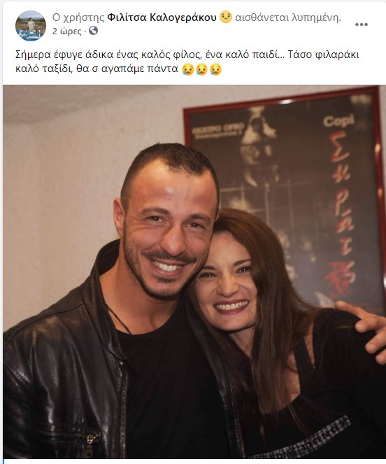 Η Φιλίτσα Καλογεράκου συμμετείχε στο ριάλιτι επιβίωσης Survival Secret, νικητής του οποίου είχε αναδειχθεί ο Τάσος Μπερδέσης. Η γνωστή ηθοποιός φαίνεται πως έκανε παρέα με τον πυγμάχο που δολοφονήθηκε σήμερα στη Βάρη και έσπευσε να πει το δικό της “αντίο”. Η Φιλίτσα Καλογεράκου ανέβασε μια κοινή τους φωτογραφία και έγραψε: “Σήμερα έφυγε άδικα ένας καλός φίλος, ένα καλό παιδί… Τάσο φιλαράκι καλό ταξίδι, θα σ’ αγαπάμε πάντα”.