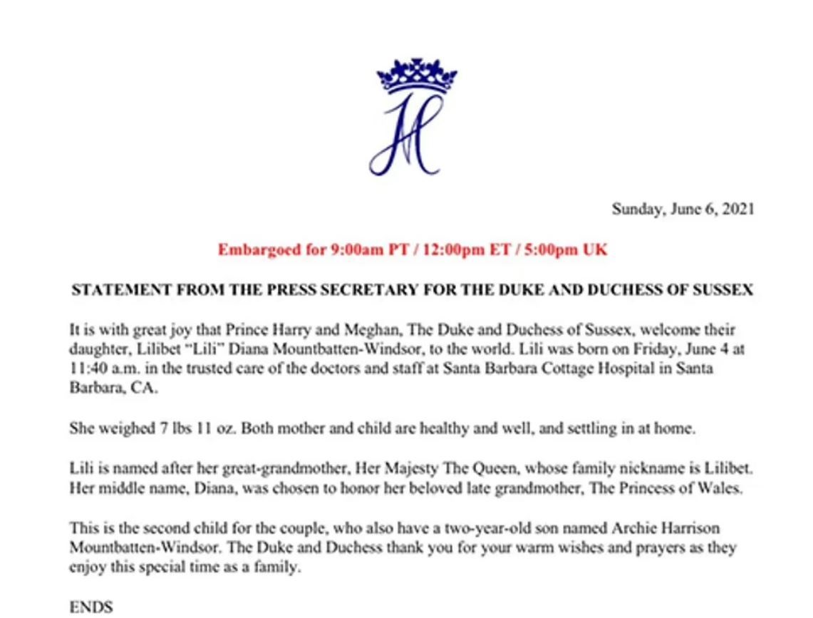 Η πρόσκληση λέγεται ότι έγινε πριν από τη γέννηση της κόρης του Δούκα και της Δούκισσας του Σάσεξ, Λίλι.