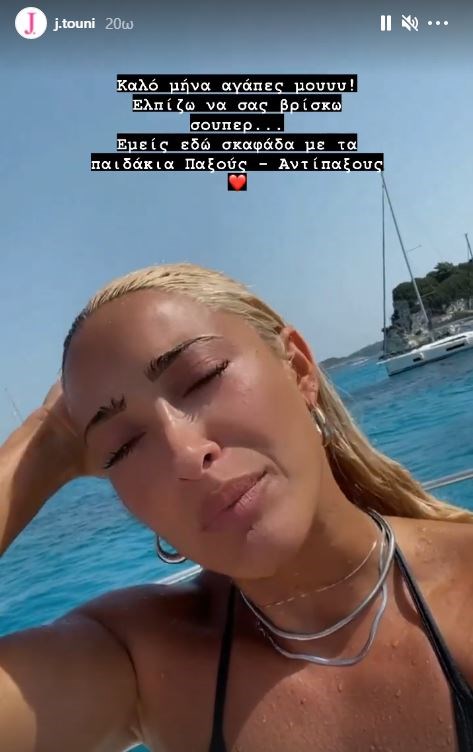Παράλληλα ανέβασε πολλά στιγμιότυπα από τις βουτιές με την παρέα της στα τιρκουάζ νερά των Παξών.