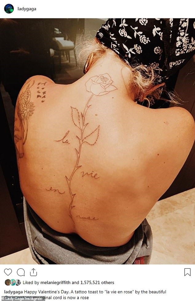 “Χαρούμενη ημέρα του Αγίου Βαλεντίνου. Μία πρόποση με τατουάζ στο “la vie en rose” από τον @winterstonr. Η σπονδυλική μου στήλη είναι τώρα ένα τριαντάφυλλο” έγραψε στη λεζάντα.