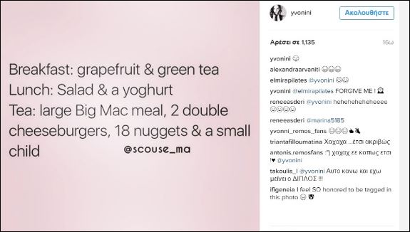 Λίγες ημέρες αφότου διέψευσε τις φήμες για εγκυμοσύνη λέγοντας ότι… έφαγε πολύ και φούσκωσε η κοιλιά της, η σύντροφος του Αντώνη Ρέμου φαίνεται πως αποφάσισε να… τρολάρει ένα από τα δημοφιλή θέματα της εποχής, τις δίαιτες και τις συμβουλές διατροφής για απώλεια κιλών το καλοκαίρι.