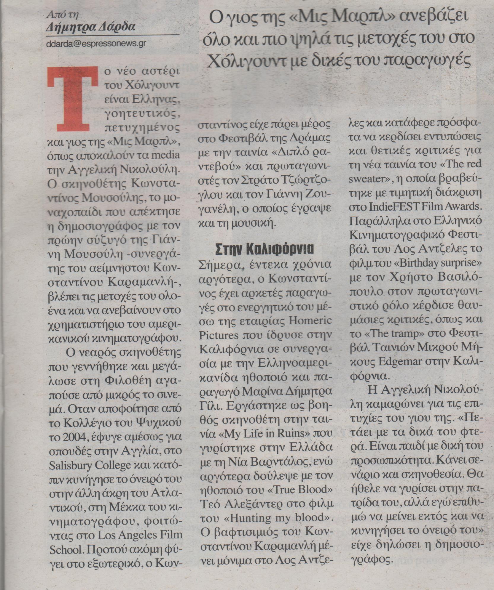 Ο σκηνοθέτης Κωνσταντίνος Μουσούλης, το μονοχοπαίδι που απέκτησε η δημοσιογράφος με τον πρώην σύζυγό της Γιάννη Μουσούλη, βλέπει τις μετοχές του ολοένα και να ανεβαίνουν στο χρηματιστήριο του αμερικανικού κινηματογράφου.