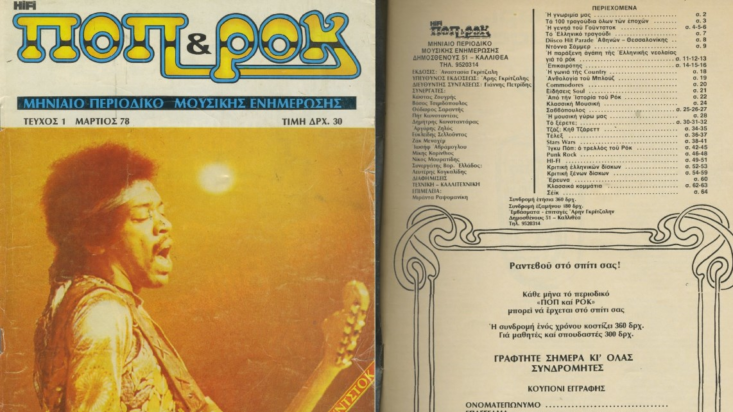 Με εξώφυλλο τον Jimi Hendrix, κεντρικό θέμα την “Γενιά του Γούντστοκ” και τιμή 30 δραχμές είχε κυκλοφορήσει τον Μάρτιο του 1978 το πρώτο τεύχος του μηνιαίου μουσικού περιοδικού “Ποπ & Ροκ”.