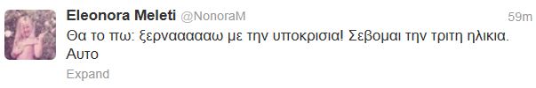 Ενα αιφνίδιο “ξέσπασμα” της παρουσιάστριας του STAR στο twitter δημιούργησε πολλά ερωτηματικά, για το ποιον ή ποια, μπορεί να εννοούσε η Ελεονώρα Μελέτη όταν έγραφε…
