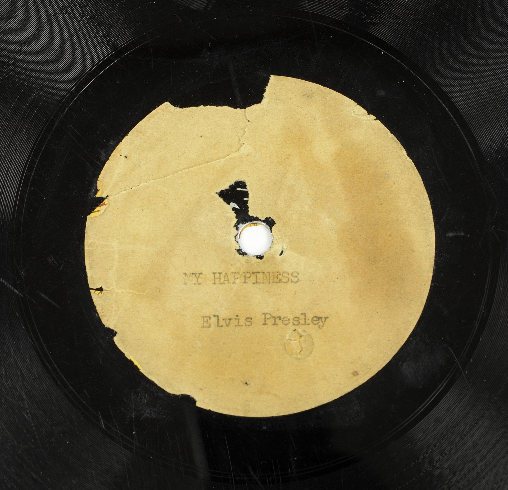 Μπήκε στο μαγαζί που έγραφε ως ταμπέλα με neon “Memphis Recording Service” και ηχογράφησε επί τόπου δύο τραγούδια, που τα έκοψαν επί τόπου σε δίσκο βινυλίου και του το έδωσαν. Το τραγούδι στην μία πλευρά ήταν το “My Happiness”, διότι ο Elvis σκόπευε να χαρίσει τον δίσκο στην μητέρα του. Και το άλλο ήταν το “That’s When Your Heartache Begins”.