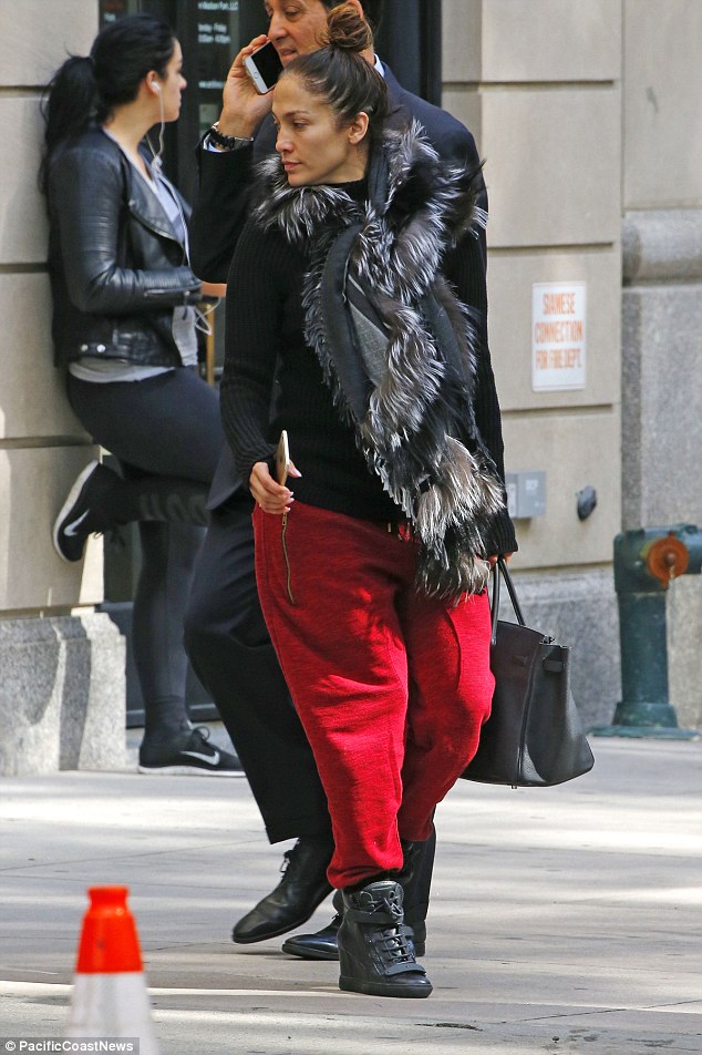 Η Λατίνα σταρ εμφανίστηκε στη Νέα Υόρκη, στα γυρίσματα της νέας τηλεοπτικής σειράς «Shades of Blue», χωρίς ίχνος make up. Φορώντας ένα κόκκινο φαρδύ παντελόνι και ένα μαύρο πλεκτό, η 46χρονη δεν θύμιζε σε πολλά τη σταρ που έχουμε συνηθίσει.