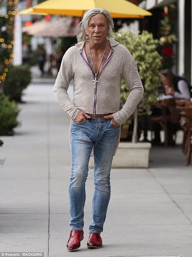 Άλλη μια εκκεντρική εμφάνιση πραγματοποίησε ο Μίκι Ρουρκ, ο οποίος τα τελευταία χρόνια δεν θυμίζει σε τίποτα τον γοητευτικό ηθοποιό που θαύμαζαν κάποτε οι γυναίκες. Το πρόσωπο του διάσημου ηθοποιού έχει παραμορφωθεί από τις πλαστικές επεμβάσεις στις οποίες έχει υποβληθεί.