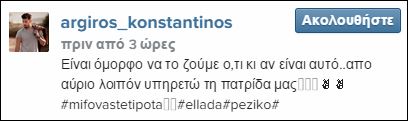 Φαντάρος θα είναι από αύριο ο τραγουδιστής Κωνσταντίνος Αργυρός… Για το λόγο αυτό ο τραγουδιστής άφησε μουστάκι και έκοψε τα μαλλιά του.
